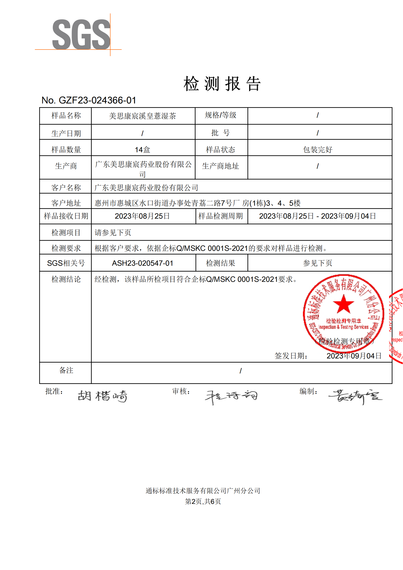 美思康宸溪皇薏濕茶檢測報告