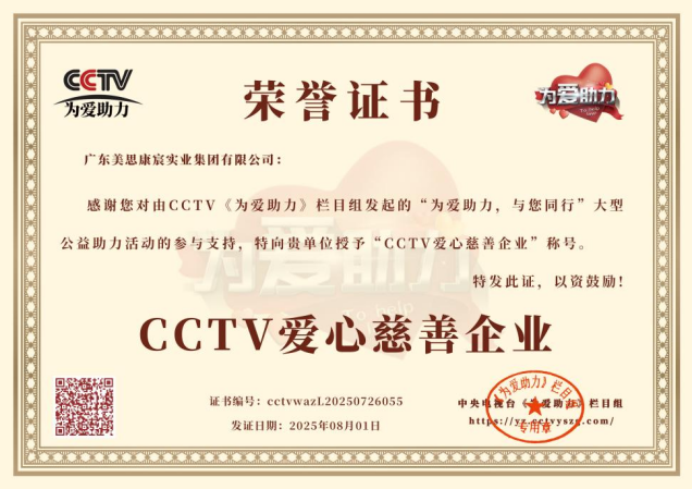 2025年8月1日,美思康宸的公益初心再獲國(guó)家級(jí)見證——