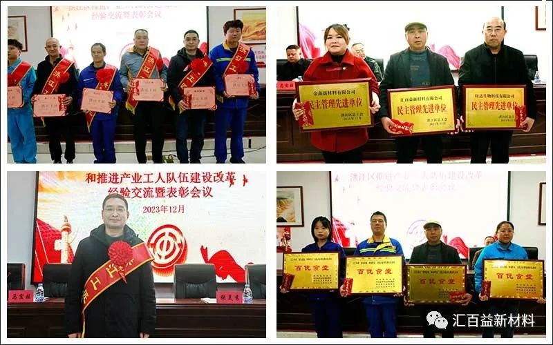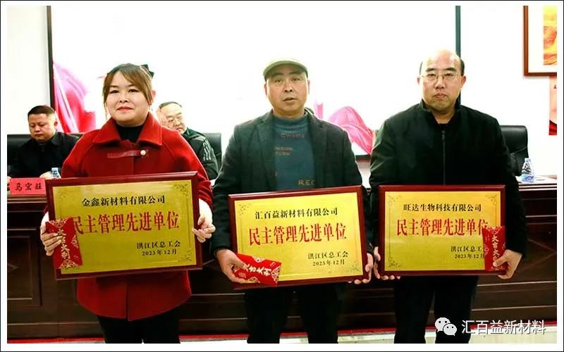 湖南匯百益新材料有限公司等三家企業(yè)榮獲年度先進(jìn)單位榮譽(yù),包括匯百益技術(shù)總監(jiān)余博士在內(nèi)的6名不同企業(yè)相關(guān)技術(shù)負(fù)責(zé)人被評為洪江工匠,會議對獲獎(jiǎng)單位及個(gè)人進(jìn)行了表彰。區(qū)領(lǐng)導(dǎo)在會上表示:希望獲得表彰的集體和個(gè)人珍惜榮譽(yù),再接再厲,在實(shí)施技術(shù)攻關(guān)、推動科技創(chuàng)新、提高技能素質(zhì)、深化企業(yè)民主管理等方面再立新功再創(chuàng)佳績。