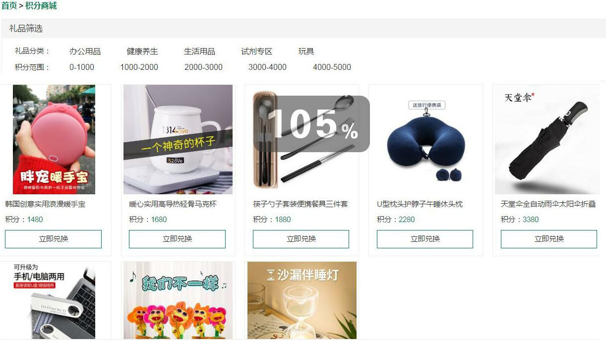 我們還為您設置了禮品篩選規(guī)則,您可以根據(jù)禮品的分類進行篩選,或者根據(jù)積分范圍進行查找。目前我們設置了上百個可兌換的積分禮品,并且禮品種類將不定時更新,總有一款讓您心動。